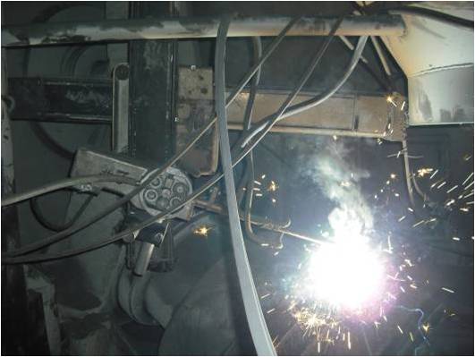 圖(2)在盾構(gòu)機(jī)刀盤上采用碳化鎢合金耐磨焊條現(xiàn)場(chǎng)堆焊